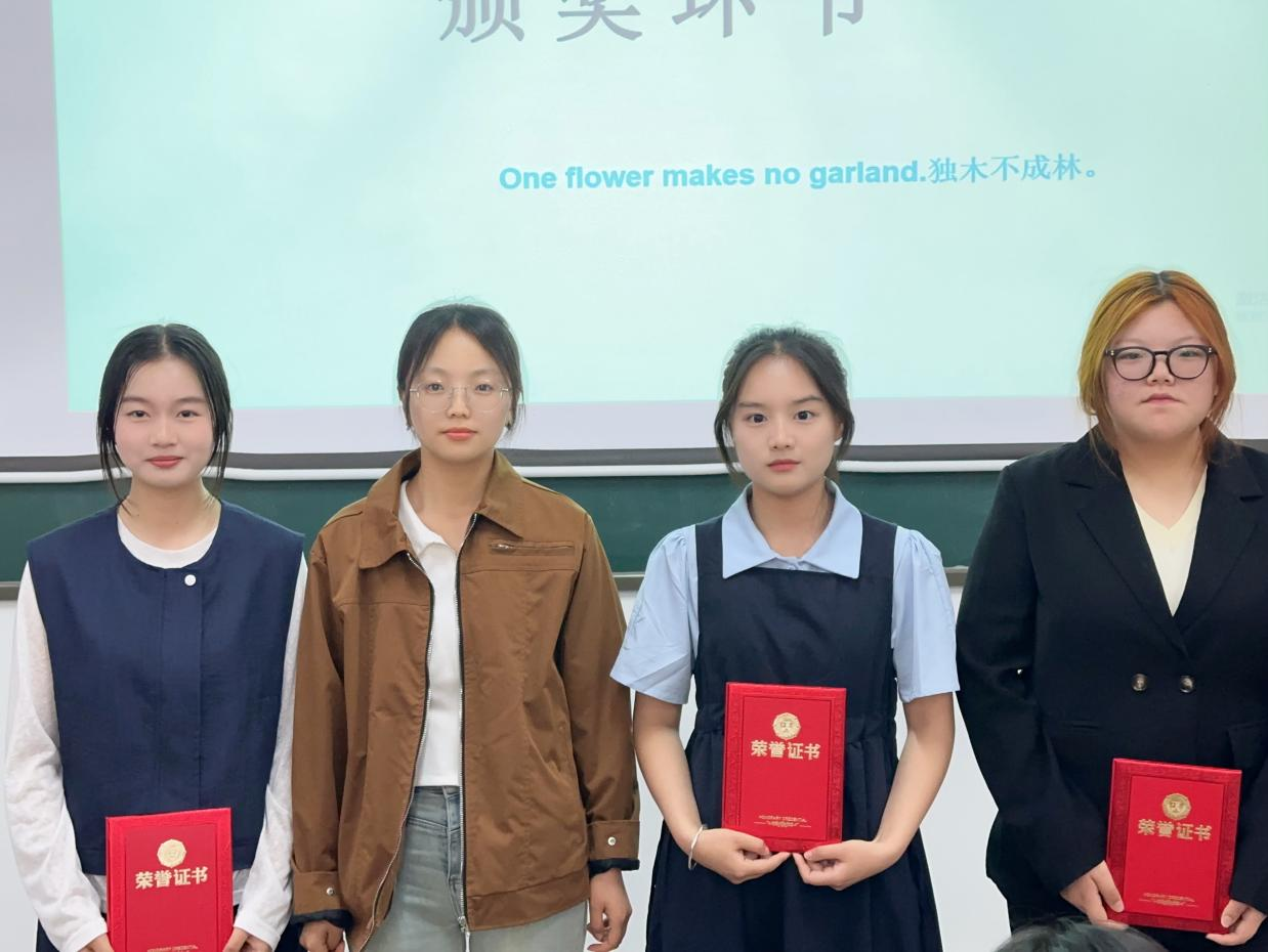 从左至右(许文丽 辅导员王梦丹 龚文慧 李小宇)