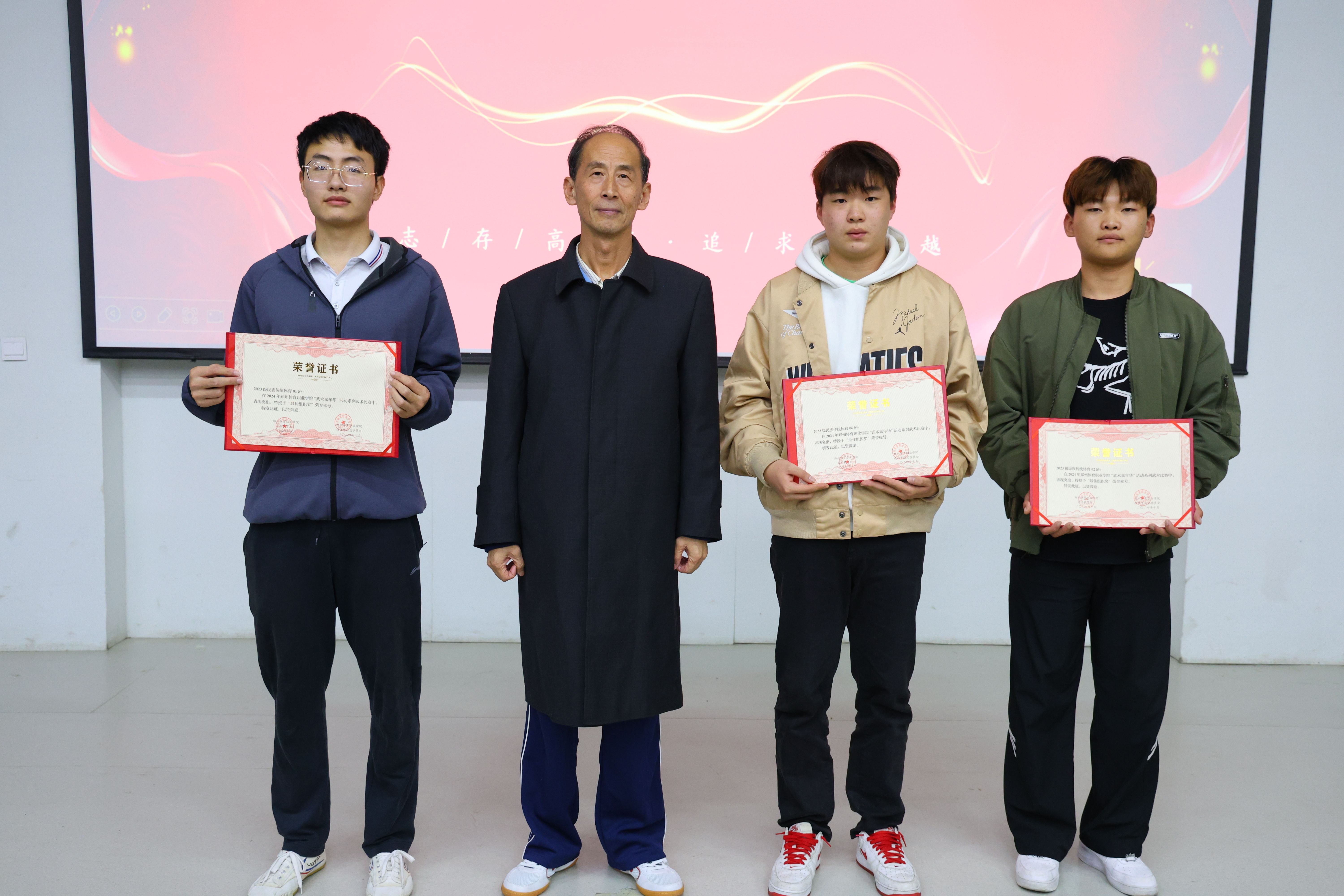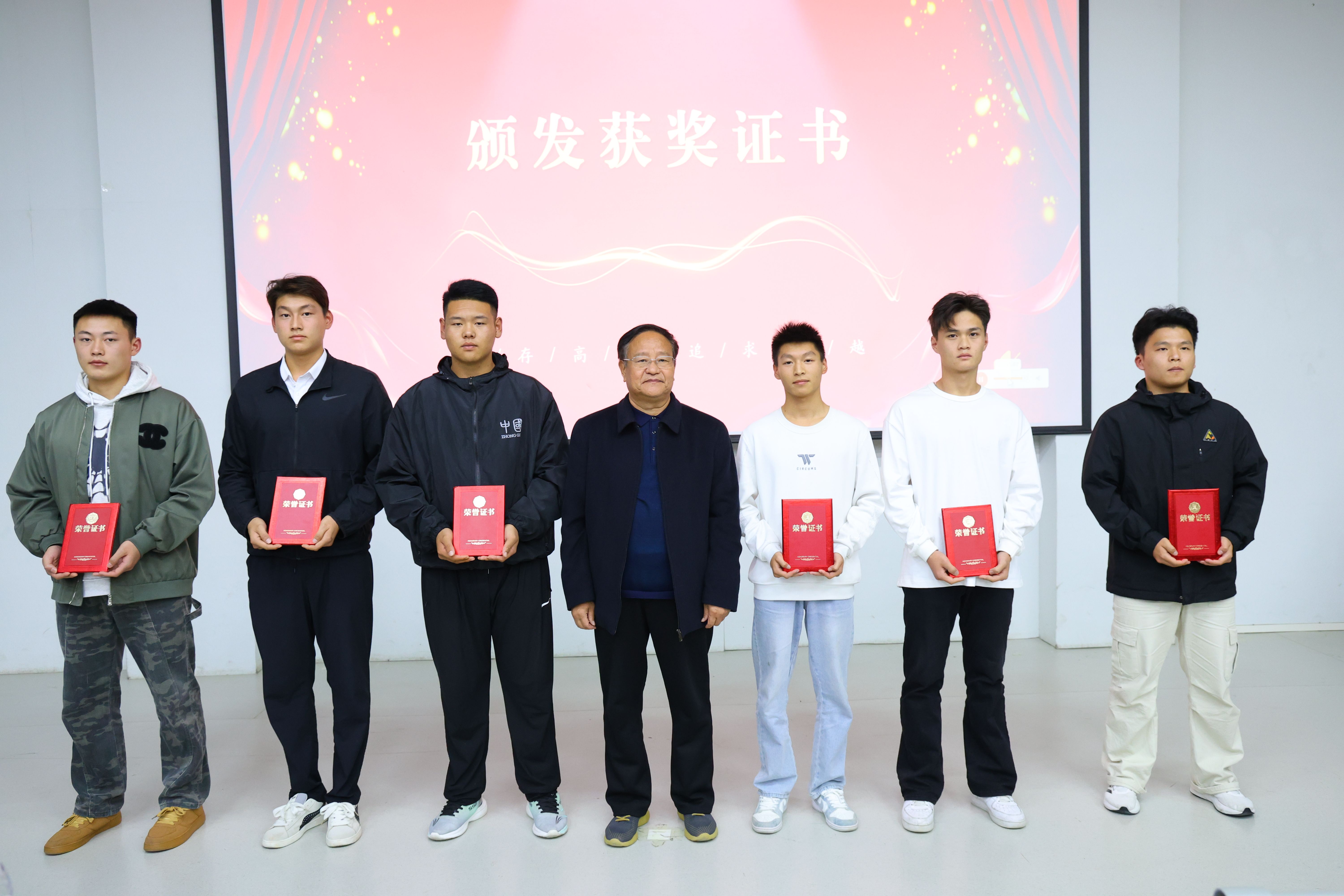 副校长赵聂为荣获搏击项目的学生代表颁发奖金和获奖证书